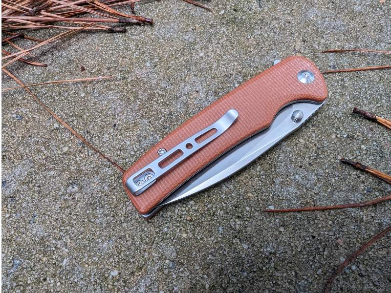 The Sencut Sachse is very comfortable in my hand and in my pocket. It has a reversible pocket clip for ambidextrous tip-up carry. It’s a good-quality stainless steel clip, identical to what I’ve seen on some other Sencut and Civivi knives.