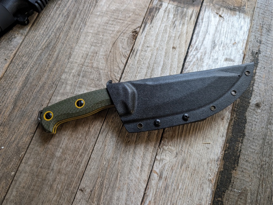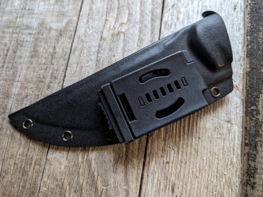 The sheath is solid in terms of retention with no rattle, but my one real complaint is the belt attachment. It is set high, which makes the knife ride awkwardly high on a belt. A dangler-style sheath would have been a much better choice for a knife of this size.