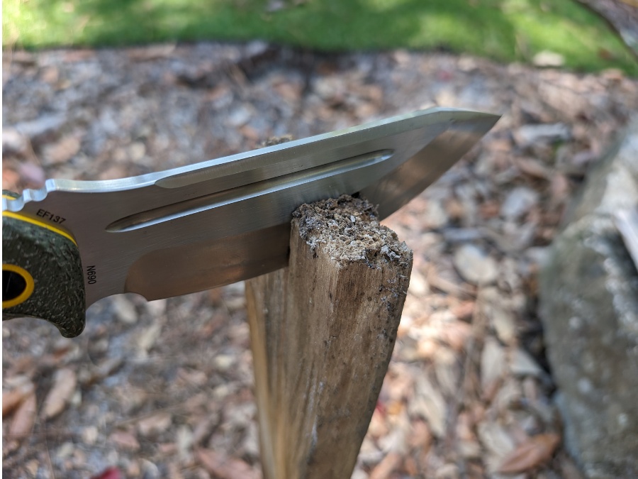 What stood out most in my testing and research is how well the EF137 shrugs off abuse. A lot of knives in the hundred dollar range claim survival ready, but this one actually delivers. Baton wood, smash it through knots, drop it in the dirt, the edge resists rolling, and the finish does not scratch up nearly as easily as you would expect.