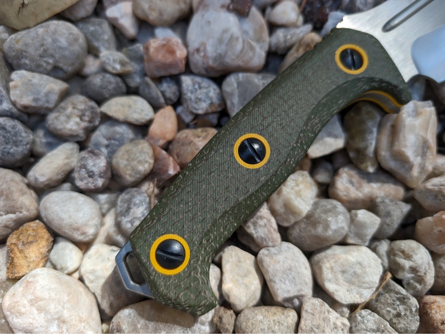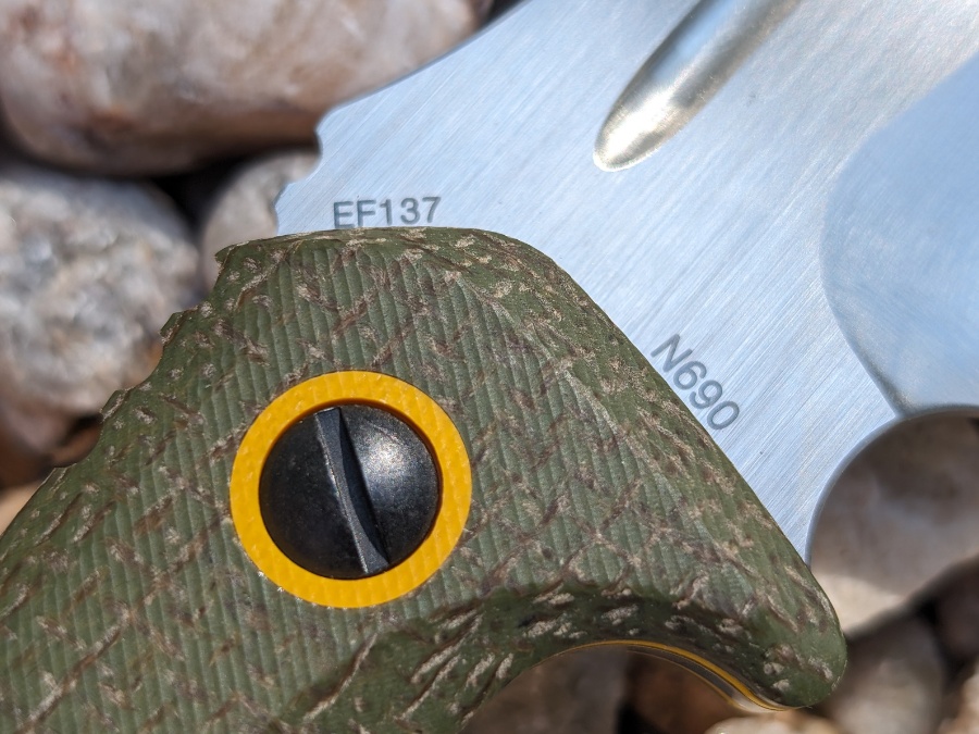 Eafengrow used N690 steel here, which I like seeing. Think of it as Europe’s answer to VG10, a solid blend of edge retention, toughness, and corrosion resistance. It is not a “super steel” with a flashy name, but it is proven, reliable, and easy enough to sharpen in the field. The two-tone Micarta handle is large and comfortable, with enough room for gloved hands and no hot spots when you are bearing down.