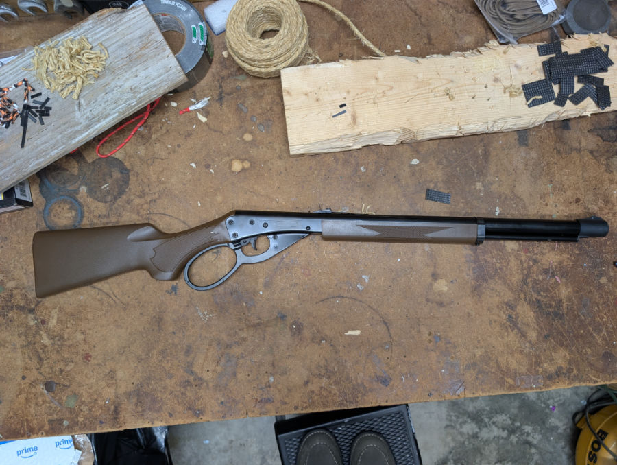 The Umarex Marlin Lever Action brings that old school lever rifle feel into the backyard, and while it looks like a light plinker, it actually takes a bit more muscle to cock than you would expect. My nine year old struggles with it at times, so this is not the best choice for very young shooters.