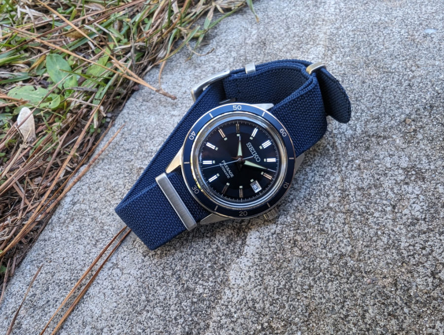 - A strap that can be swapped easily between canvas, leather, or NATO nylon.