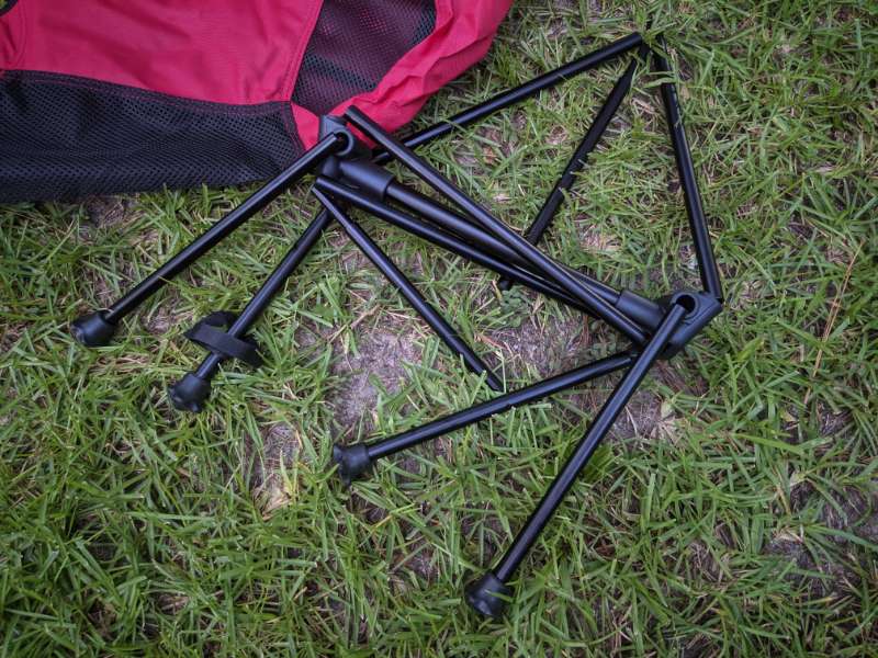 Setting up the Hkuddas Camping Chair is fairly easy and straightforward. The “skeleton” of the chair consists of legs and a support frame (made of 7075 aircraft grade aluminum) that snap together much like tent poles, with interior shock cords that essentially allow the whole thing to spring into shape quickly.