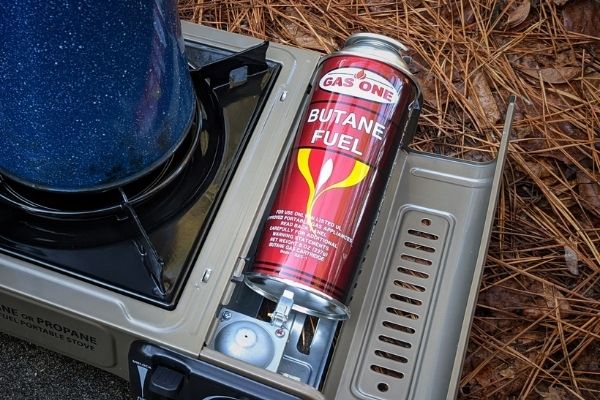 Butane and propane canisters should both be stored in a dry place away from direct sunlight at temperatures below 120°F. Camp stoves that use butane or propane can both produce carbon monoxide, and should always be used outdoors in a well-ventilated area.