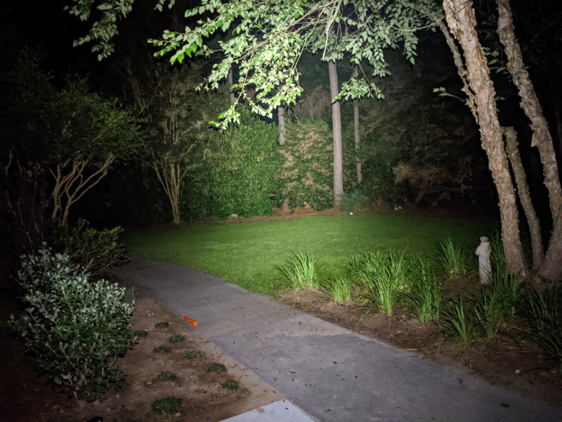 The 5 lumen Low setting is actually brighter than it sounds. It’s plenty bright enough for most indoor uses, and perfect for up-close tasks like reading or looking at a map in the dark. The 180 lumen High setting produces a brilliant beam that’s good for finding your way at night. It’s bright and wide enough to illuminate a good portion of an average-sized backyard at night.
