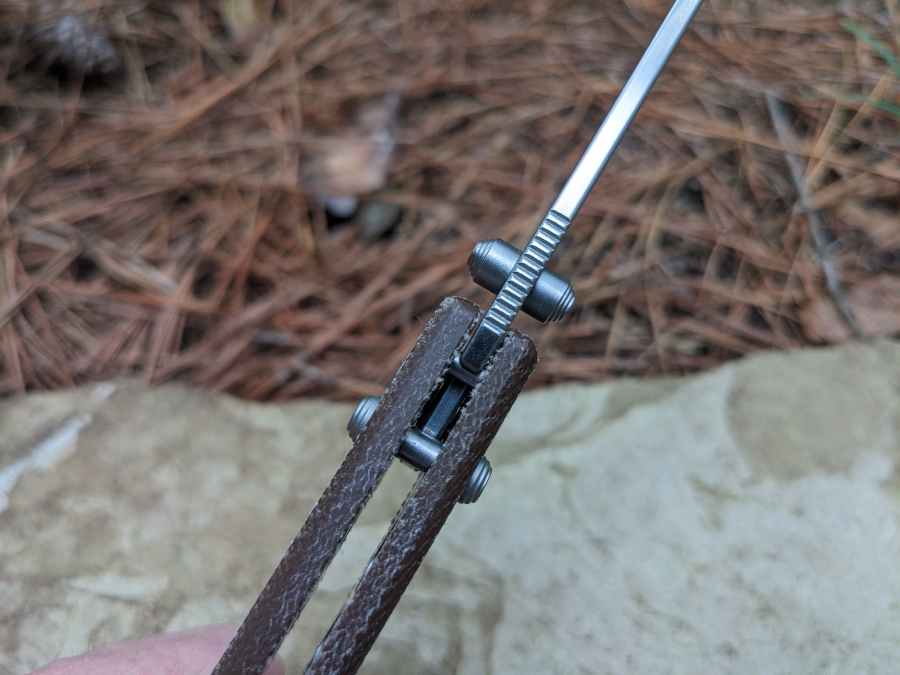Frankly, it’s one of the best slide-lock systems I’ve seen on a knife, and if more manufacturers hit this quality level, fewer people would complain. The thub studs for the lock stand way to proud of the knife scales. In a perfect situation they would be almost flush or slightly raised from the scales, but here they are quite a bit higher than they need to be. Not a deal breaker, but should be noted.