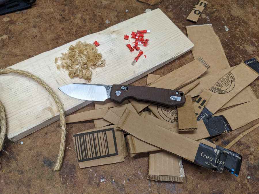 For example, the sharp point was perfect for piercing through tough packages or puncturing sharp wood surfaces. The Raccoon slid through paper and cardboard with ease and even did reasonably well with thinner particle boards. Surprisingly, it even cuts through food well. As far as an EDC knife, the Raccoon excels in all the needed categories.