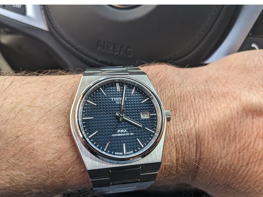 I bought the blue dial PRX to celebrate Tissot being the official timekeeper of the Tour de France, and I have worn it every July since as part of my own weird cycling ritual. Three years later it is still in my rotation. The PRX is slim, sharp, and easy to wear, with an eye catching blue waffle dial that feels like it belongs on a much more expensive watch. The bracelet fit quirks, weak lume, and plastic parts in the Powermatic 80 are real, but none of that has kept this watch from becoming a steady, reliable daily driver.