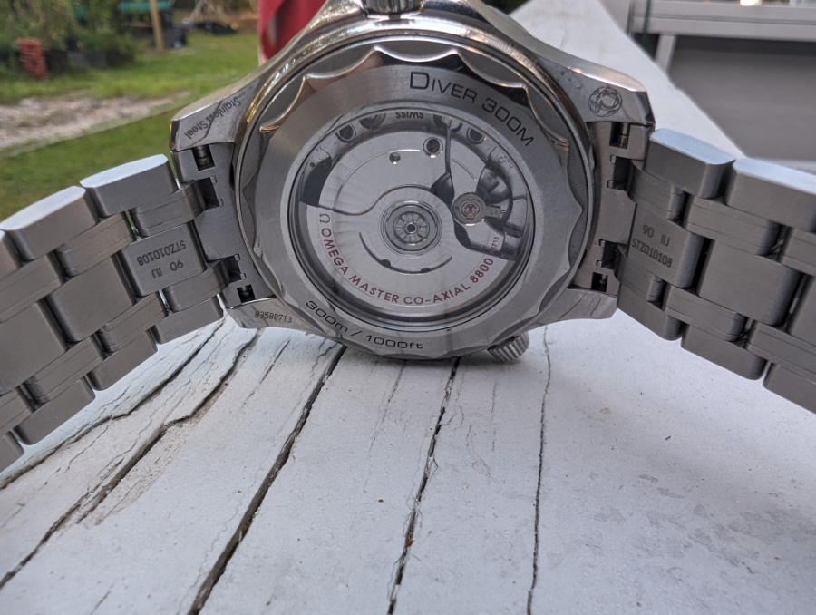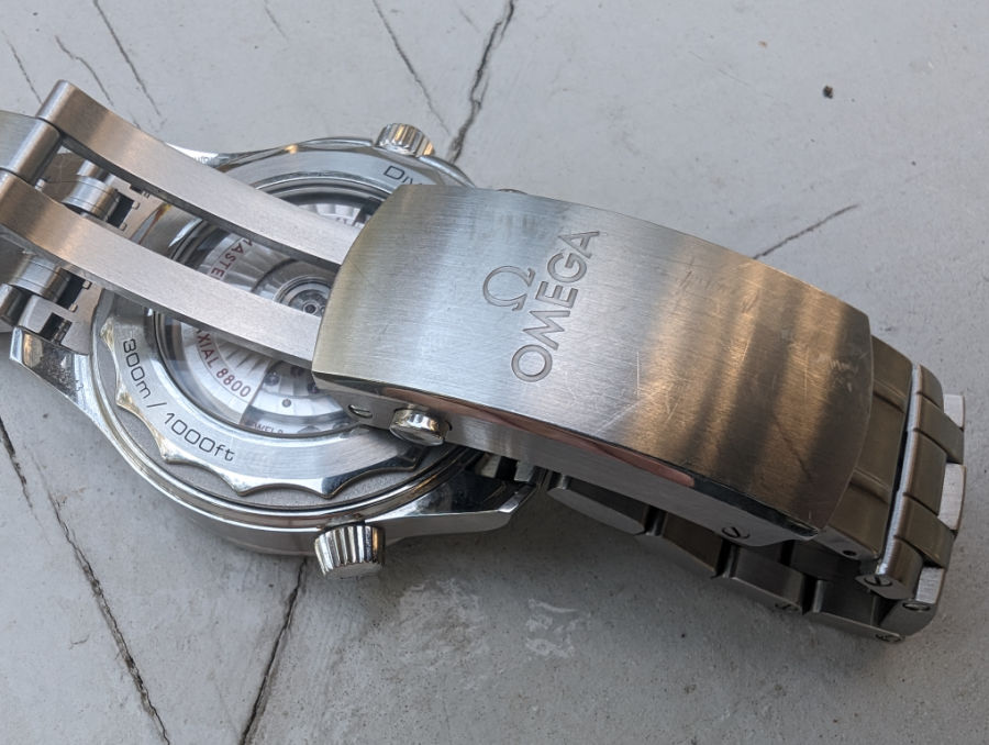 I have never taken this watch off the bracelet. Part of that is because the bracelet is a hallmark of the model, and part of it is because Omega did a lot of things right. The five link layout articulates beautifully. Links are screwed. End links are solid. The clasp has a push button micro adjust and a wetsuit extension that is smooth and secure. Tolerances and finishing are excellent.