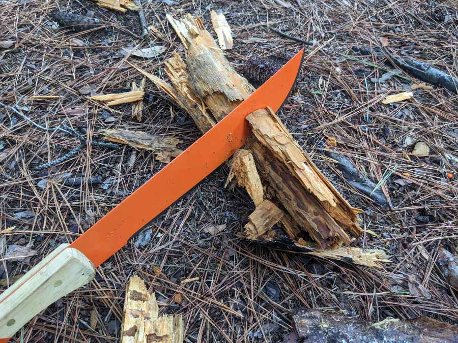 One thing to watch out for is that the edge can start to roll if you try to use the machete to cut something too tough, like a very thick chunk of hardwood. Of course, you probably shouldn’t be doing that anyway; that’s what axes are for. The convex grind does help reduce rolling, but it can happen with some hardwoods.