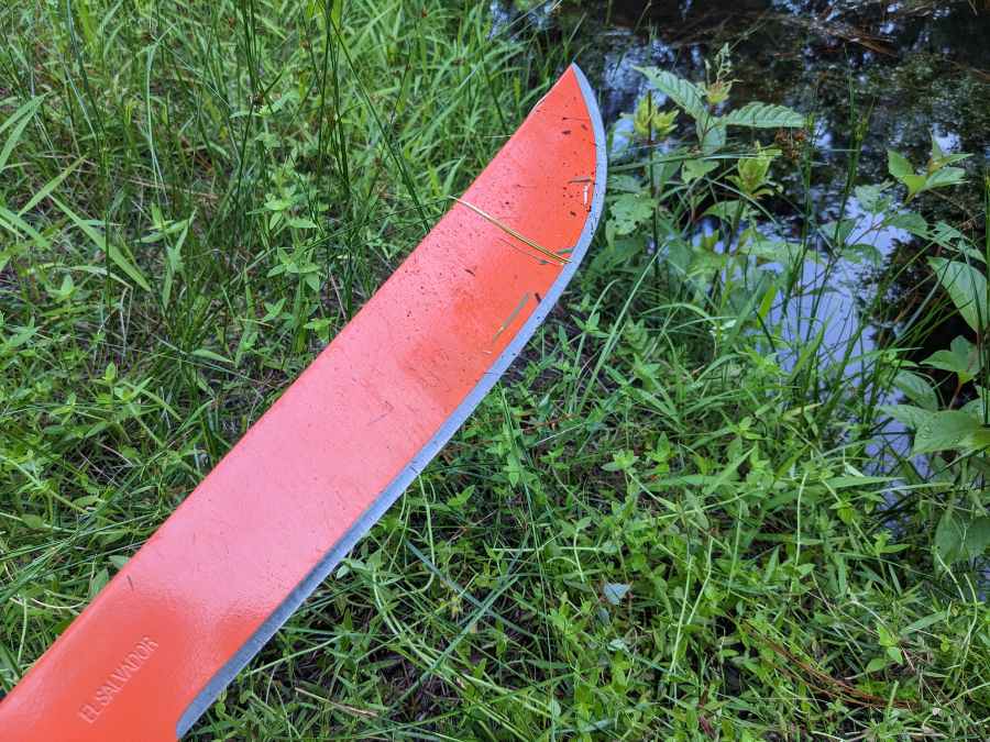 The blade is shaped like a classic Latin machete, and it turns out that these are made in El Salvador, which tends to be a good sign where machetes are concerned. I’m also impressed with how sharp mine is right out of the box. It didn’t come with a sheath (just a paper sleeve to protect the blade during shipping) though I’m not too upset about that considering this machete often retails for less than $20.