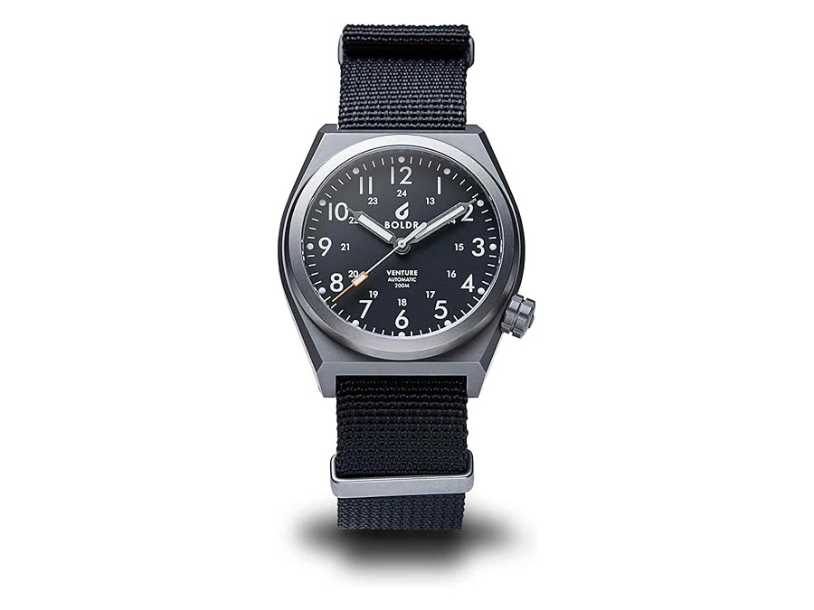BOLDR’s Venture is what many of us wish the Hamilton Khaki Auto were in daily use. It is compact, tough, and purpose built with a screw down crown and real water resistance, all wrapped in a bead blasted titanium case that disappears on wrist.