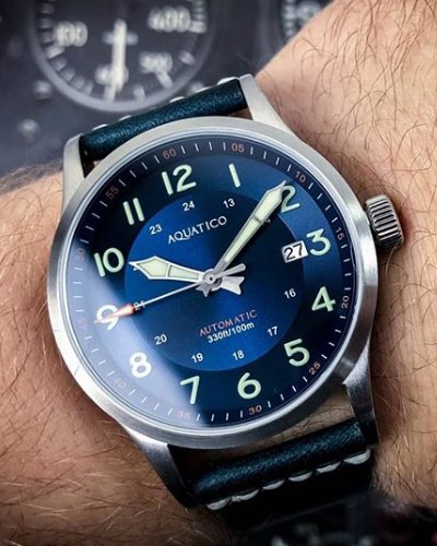 This is the one watch on the list that I only had for a short time, but my experience with many other Aquatico watches tells me it should be just as reliable over the long haul. One of the less expensive watches on the list, yet it has the specs and build quality to rival many watches costing two to three times more. The Blue Angel is full of C3 Super Luminova, has a traditional military dial layout, screw down crown and a very nice Horween leather strap – all for under $300. See all the colorways on Aquatico’s website here.