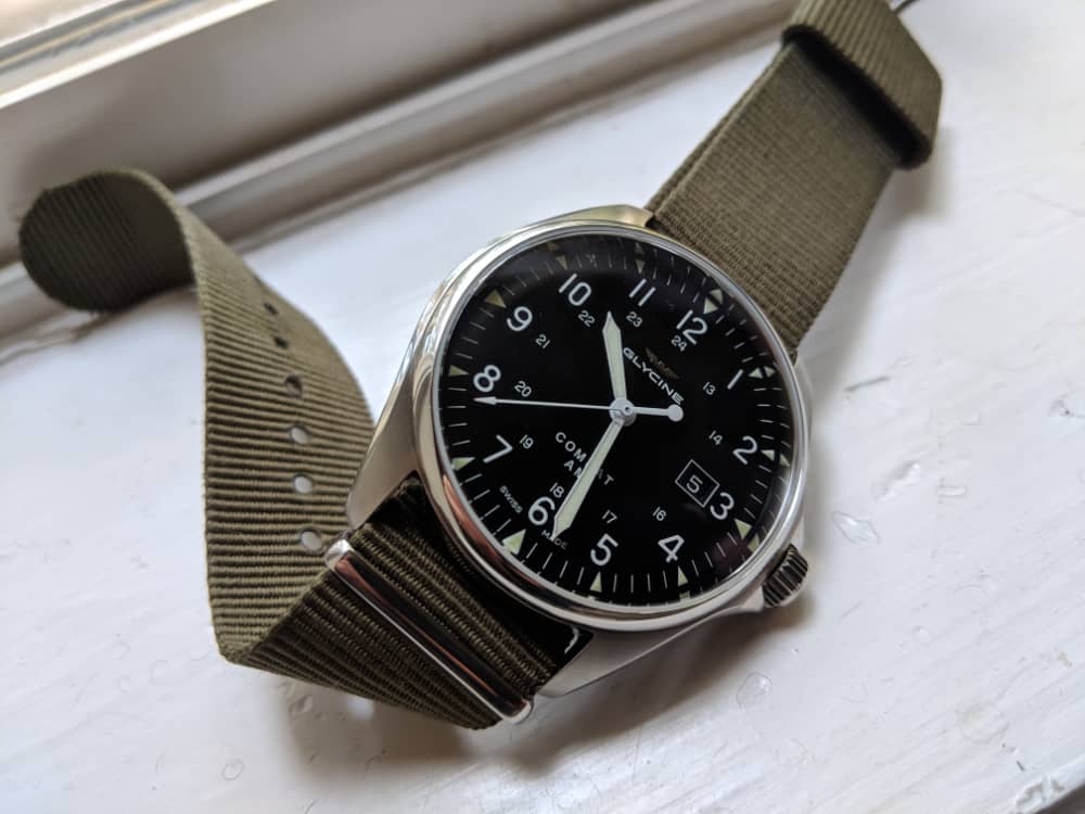 I reviewed the Ocean Vintage in depth here, and it’s truly a stellar watch! If you want a robust watch that can do the rough stuff, then consider this guy. It comes on a great bracelet that can be easily swapped to a nato strap for a more official field watch look.