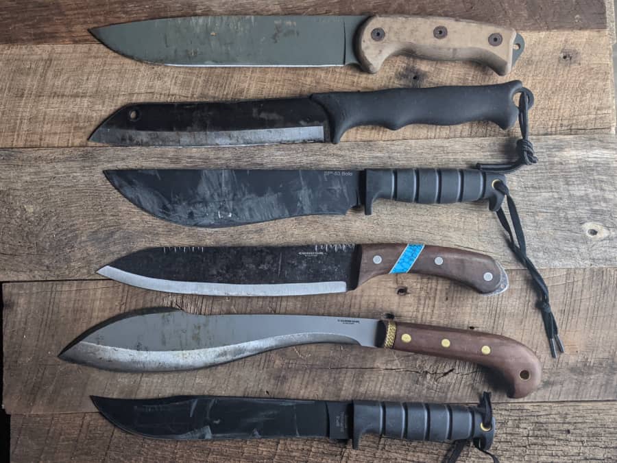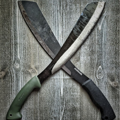 For backpacking and hiking, the Parang machete is going to be your best option. It is a cross between a survival knife and and traditional machete, it usually has a slightly thicker blade and can handle harder use. You can find them with wood handles, rubber handles, and even micarta. The key here is to buy one with a full tang, that means the blade stock goes all the way to the end of the handle. I think a Parang and hatchet make a great wilderness combo and is very useful on backpacking trips that will extend for three days or more, or if you will be far from help.