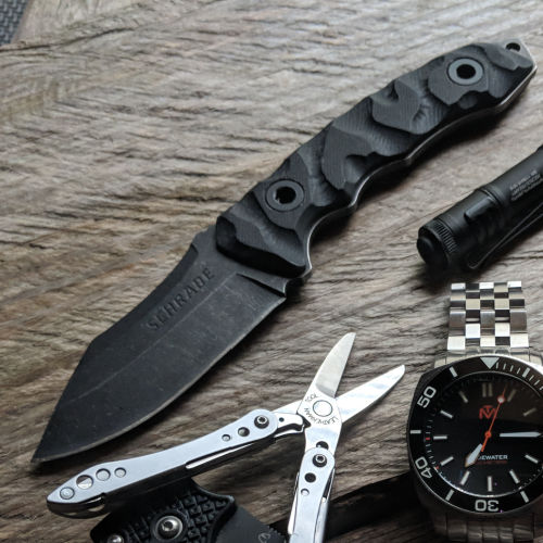 Survival knives are popular because it is assumed that anytime you go into the woods, something like this is needed. For most people a large survival knife is a little overkill. I think a better option is a belt knife or bushcraft knife paired with a chopper or machete. This is the combo I often use, a large folder with the Skarama below. I also carry a Fiskars ax all the time. I know this has become a target from the “leave no trace” people, but I never fell trees and only gather fallen branches and dead wood. Sometimes often big piece and an ax is handy in this case.