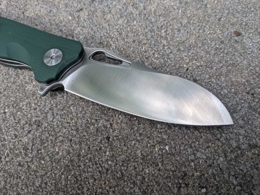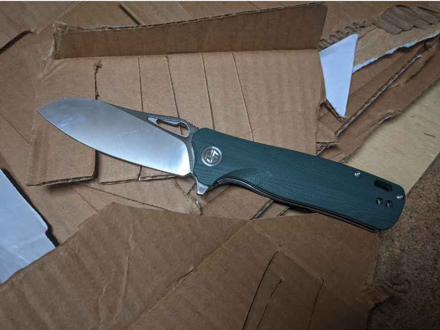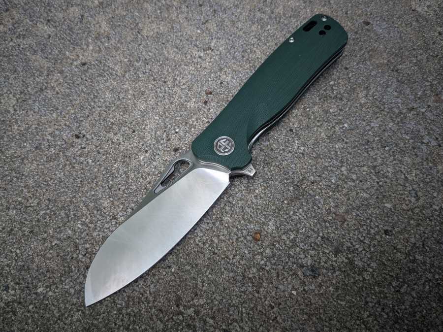 Mine was super sharp right out of the box, cutting through paper without a care in the world. It’s got a nice amount of weight to it, and the scales feel good in my palm. It’s a good-looking knife too, with a unique blade shape and an overall look that is very similar to the Petrified Fish PFP01 Beluga, but just a little bigger.