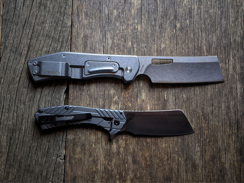 But maybe it shouldn’t be so surprising. These are some seriously cool-looking knives, and their unique design makes them perfect for jobs that involve a lot of heavy slicing and chopping. I was excited to test two of the more popular knives in the folding cleaver category: the Gerber Flatiron and the Kershaw Static.