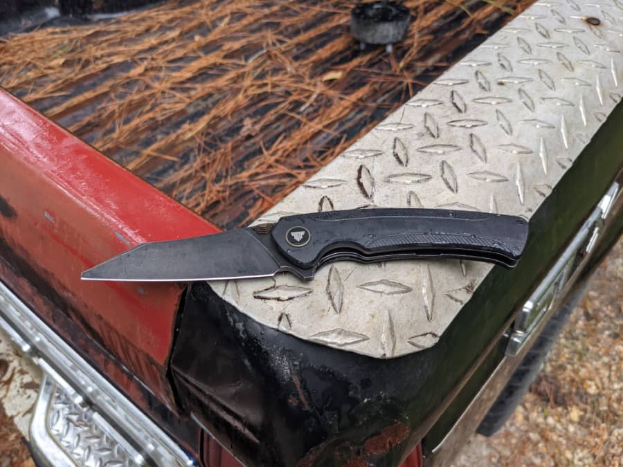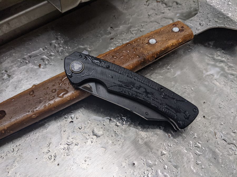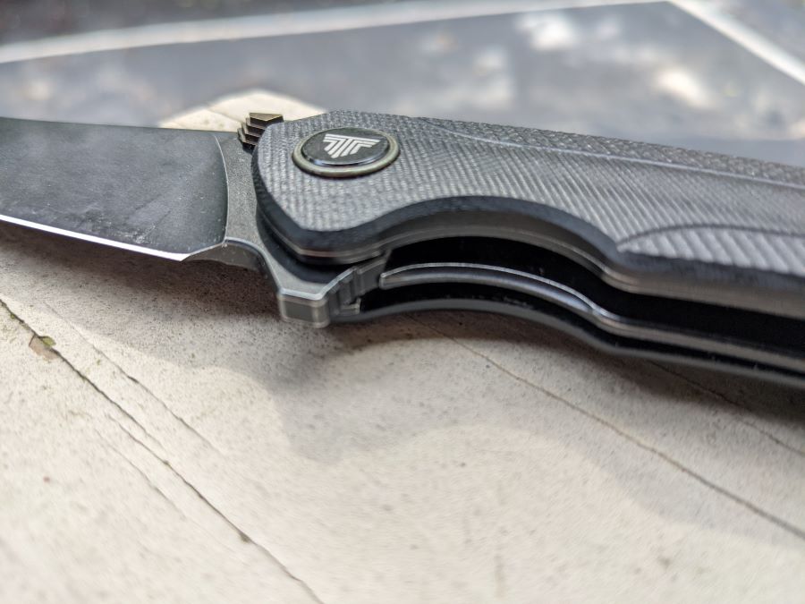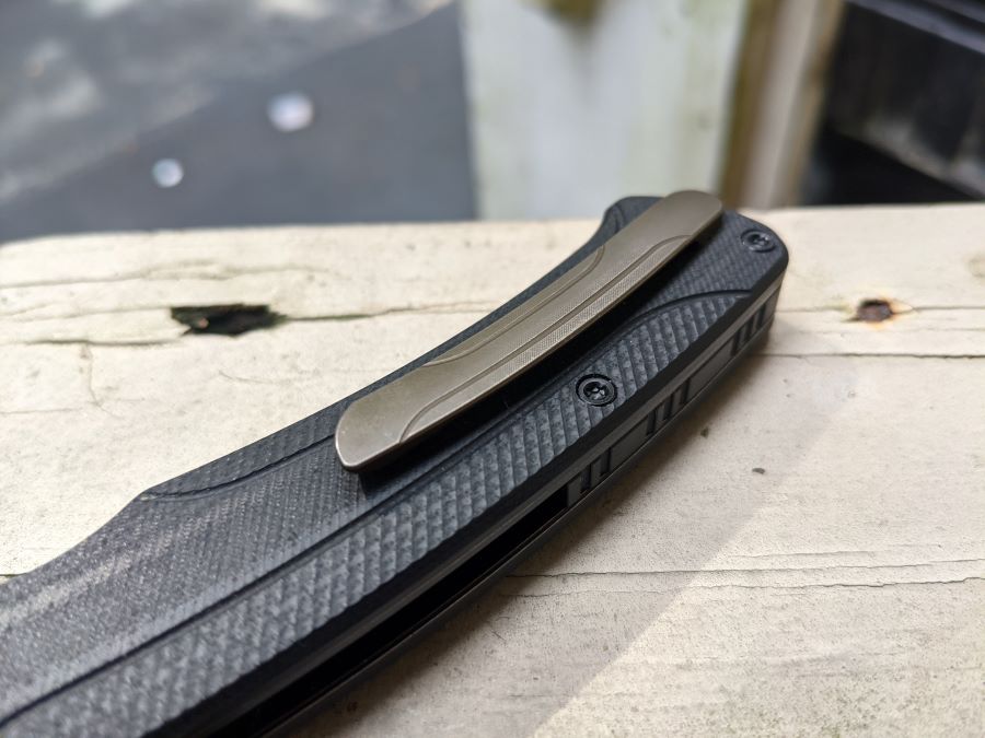 The fit and finish is nice, the G10 scales are well done, all the bits and pieces feel high quality. I really like the highlights done in titanium and overall the knife seemed decent. The dual texturing on the handle scales gives it a very modern look and feel along with the integrated pocket clip.