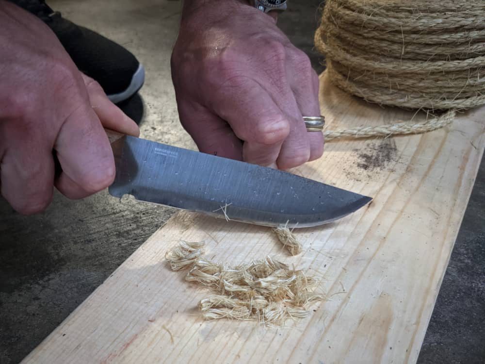 In particular, the Scandi grind makes this an excellent knife for fine tasks like shaving tinder and creating feather sticks. It’s not the ultimate knife for food prep, but it actually handles cutting up food better than most Scandi-grind bushcraft knives, perhaps because the blade is a bit thinner than some.
