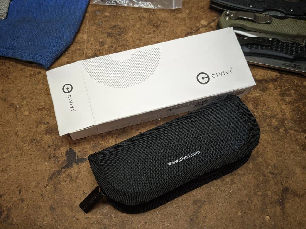 CIVIVI does a nice job on packaging and each knife comes with a zipper case, a polishing cloth, and even a CIVIVI sticker. But really, who cares about those things? It’s a pocket knife and I will never use the case; after pictures it went right in the trash. Same for the polishing cloth….what in the world? Why would you include that?