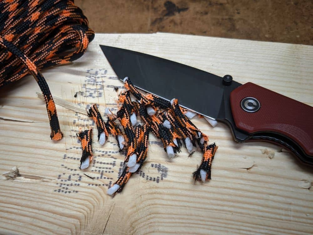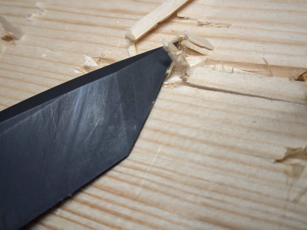 The Brazen comes very sharp out of the box and handles most cutting tasks with ease. The shortcomings of the steel show up here with the blade losing its super edge rather quickly. For lightweight tasks it’s great, but when you start to really throw some harder stuff at it like carpet and cord, it dulls quickly.