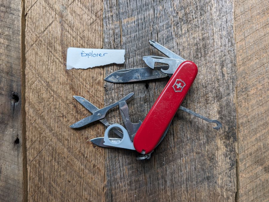 The Explorer is another fan favorite because of its “everything you could want” approach. It adds a magnifying glass, inline Phillips, and scissors on top of the usual suspects. The problem is, that magnifying glass is mostly dead weight unless you’re trying to start fires with sunlight or examine splinters like a surgeon. It’s also bulkier than most EDC-friendly SAKs, and the thicker profile makes it awkward in smaller pockets. That said, if you’re a tinker or need a tool-heavy SAK for a bag or pouch, it earns its keep.