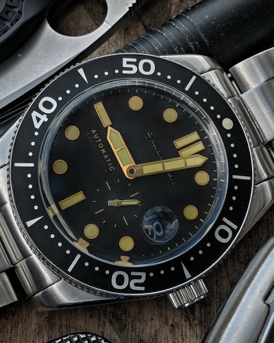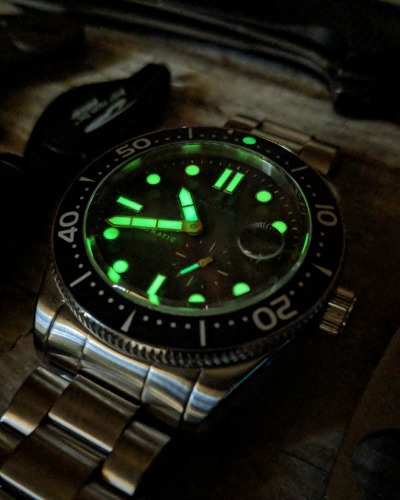 The Spinnaker Croft comes with a stainless steel case, stainless steel bracelet, sapphire crystal, super LumiNova lume, 120 click bezel, Miyota 8218 Automatic Movement, and 150 meter water resistance. I know a few purists out there will complain on the water resistance, but send me your diving cards and then I might agree with you!