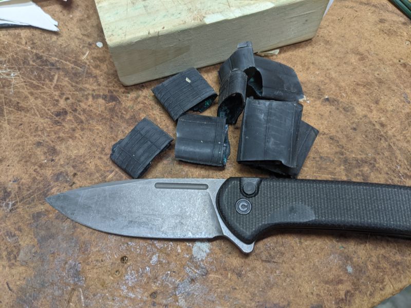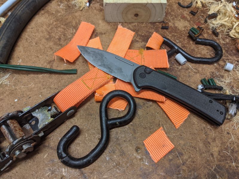 I put all knives through similar cutting tasks so I have a baseline and can make accurate comparisons. I cut cardboard, rope, paracord, plastic tubing, and nylon straps. I then went to piercing and prying tests as well as some more brutal abuse, such as dropping and throwing the knife.