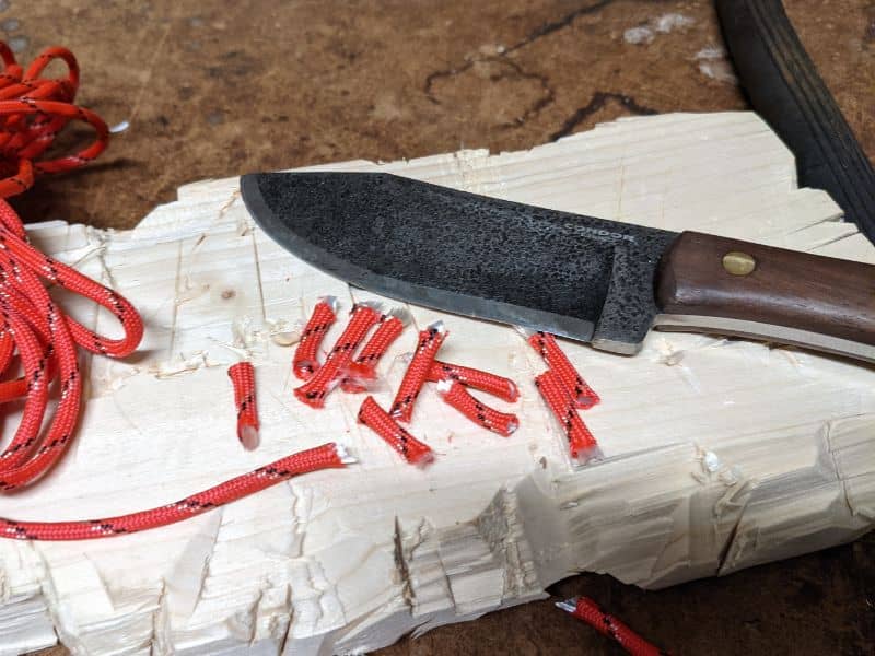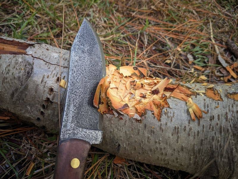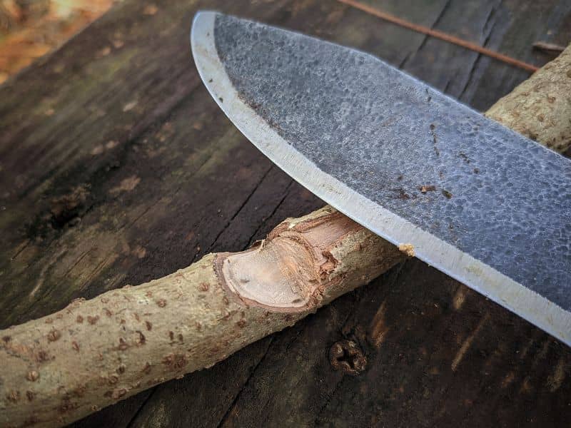 The blade of the Condor Mini Hudson Bay is broad, thick, and very strong. I tried to bend the blade of my Mini in an oak slab, and the wood tore long before the blade showed any sign of play. It’s seriously tough, which is a significant advantage in a camp knife that you need to use for heavy-duty bushcraft.