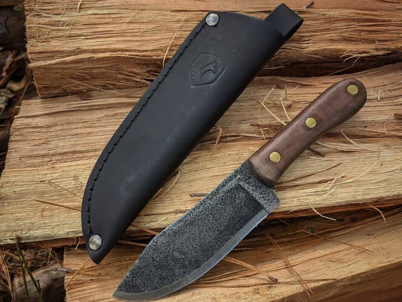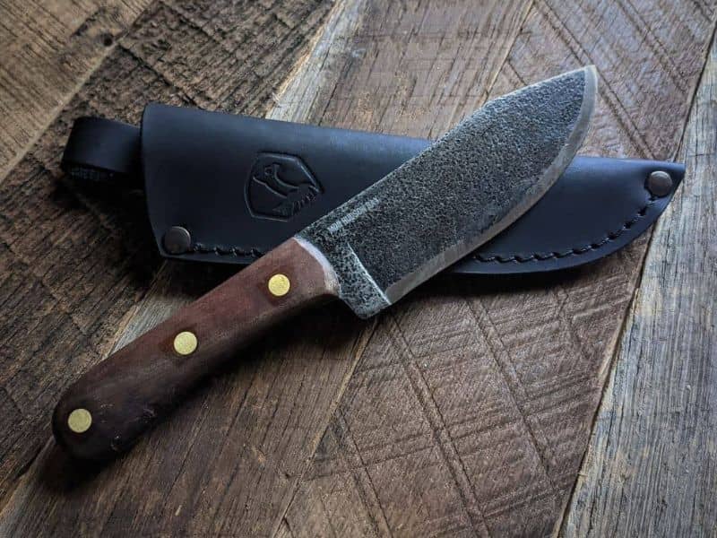 This is a solid hunting knife that’s equally useful for camp cooking and bushcraft. You can use it to skin and prep game, and to slice up meat and veggies for your dinner. You can shave tinder and split wood for your fire, and strike sparks off the spine with a ferro rod.