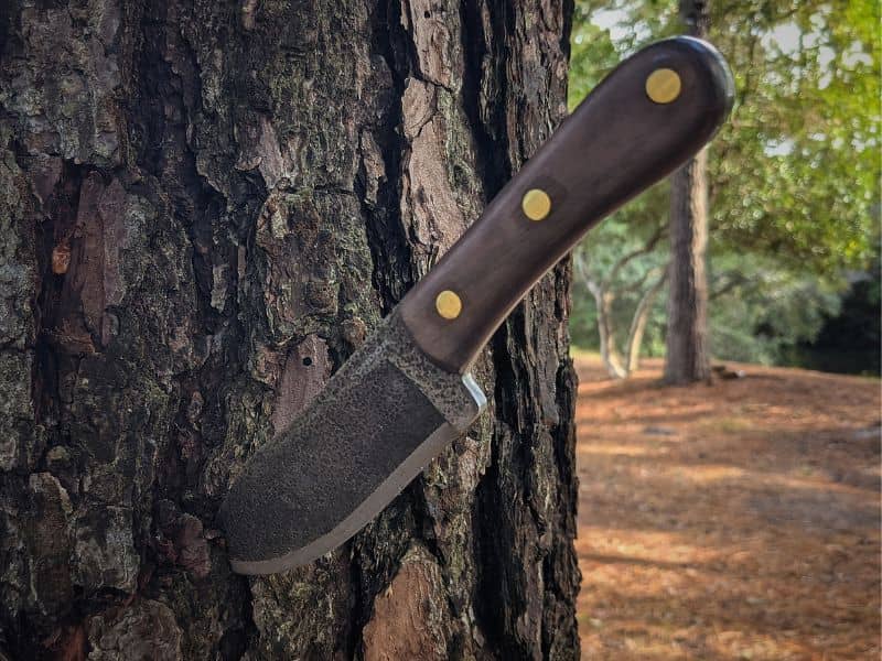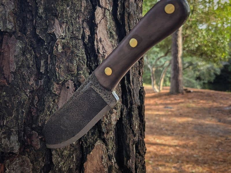 It has a certain pioneer quality to it—something you could easily imagine a 19th century mountain man pulling out of his belt. I wasn’t always a fan of knives that looked this ‘woodsy,’ but I’ve come to appreciate them a lot more over the years as I’ve gotten more and more into bushcraft.