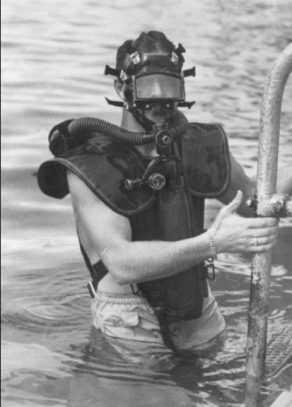 After his naval career ended and he was discharged, he traveled to the Virgin Islands where he was hired as an adviser for a motion picture called Frogman. Starring Richard Wildmark, a 1947 Academy Award winner, this 1951 picture was the first scuba diving movie and became a popular and cultural hit.