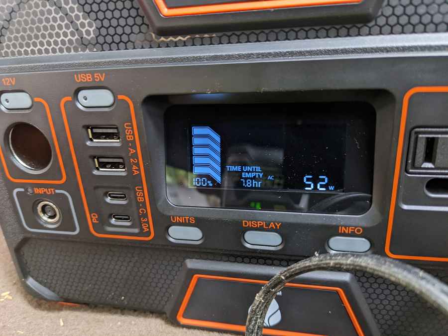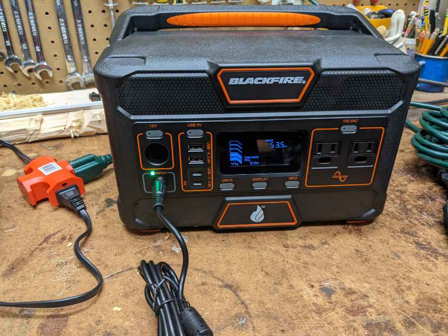 Both portable power stations include display screens that show information about the unit’s current input and output wattage, as well as battery level. The Blackfire also includes “Time Until Empty” based on current usage, which I really like, and I find that to be at least as useful as the actual percentage of the battery remaining.