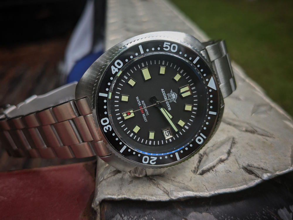 I have seen the ADDIESDIVE Steeldive on Amazon forever, and I am glad I gave it a shot. I actually think this guy will be a long term keeper….or at least until a Green Seiko SPB153J1 makes its way to my watchbox.