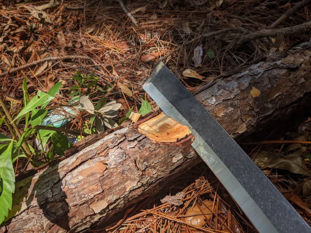 The Barebones Nata is a great chopper and it excelled at cutting down small trees and branches. The first bite of the swing made a deep cut in all but the hardest wood and if you know how to use a chopping tool like this you will be impressed.