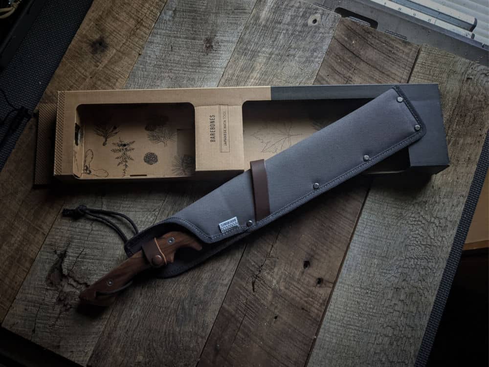 You know you are dealing with a higher caliber of tool from the get-go. The Barebones Nata is packed in a nice, open-face, cardboard box, closer to something you would find at William Sonoma than your typical machete. It also comes in a well thought out nylon sheath that is riveted together with a belt clip. I would have liked to see a regular belt loop or a “dangle” attachment, but the clip works. My issue is where the clip is placed, it makes the machete ride higher up on the hip and it’s very easy to pull the whole thing off your belt, sheath and all, when extracting the machete.
