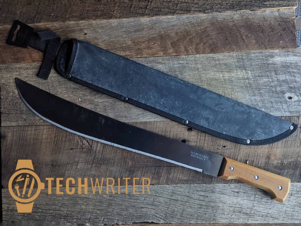 My understanding is that you can order a Tramontina 18” Machete machete with a sheath, but mine did not come with one. Considering the rock-bottom price tag on this thing, I’m not surprised that it came unsheathed, though I might consider ordering one separately in the future.
