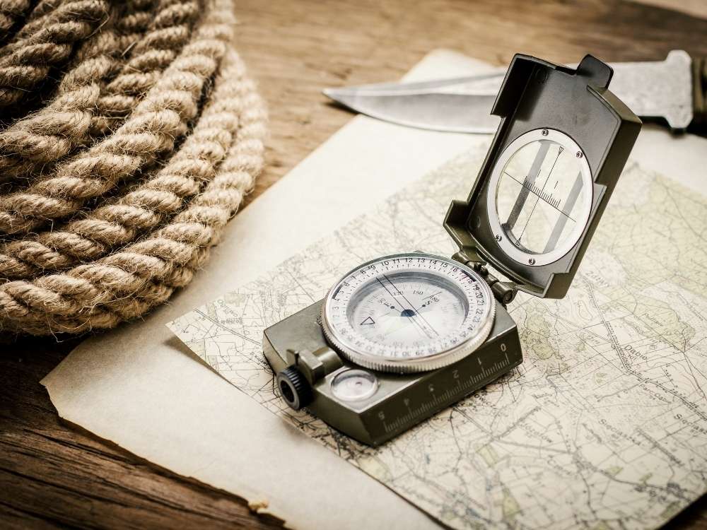 A compass allows you to identify landmarks in your field of vision. It allows you to walk a straight line—a task nearly all of us ultimately flunk at doing without the help of such an aid. (As we’ll get into, keeping yourself on a straight course and making exact 90-degree turns thanks to a compass helps you execute one technique for getting yourself un-lost.) It means you can set directional bearings to reach destinations you can see, and to those you can’t see but know are there from the map. With a compass, you can confidently navigate when you’re socked in with mist or fog—or socked in with nighttime darkness.