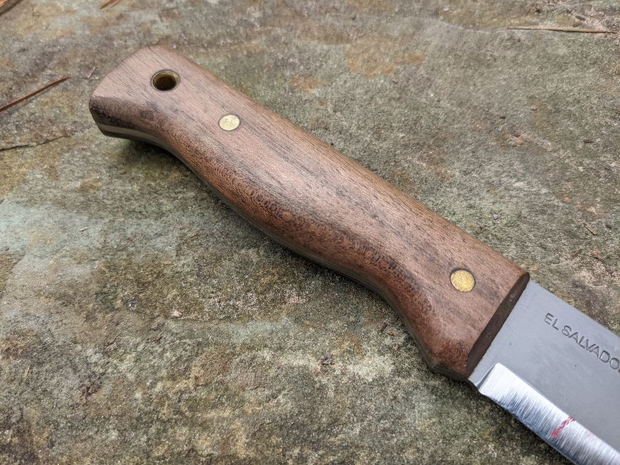The solid walnut handles really set this knife apart from others in the price range. They are beautifully sculpted and have been surprisingly very durable. Other than the normal nicks and scratches, they look almost like new after several camping seasons. The handle scales are easy to care for; you may finish it with canning wax or beeswax to protect it from the elements after a few uses.