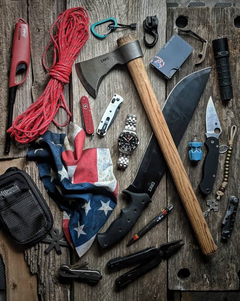 What is more American than tomahawks and machetes on the Fourth of July! This yer, I tried to keep my Instagram tradition alive and post a patriotic pic to celebrate Independence Day. It’s certainly a strange time and in my part of the state, they just enforced full-time mask policy. So, if you go out in public, you better be covered up or it’s a $50 fine. Let’s break down the gear: