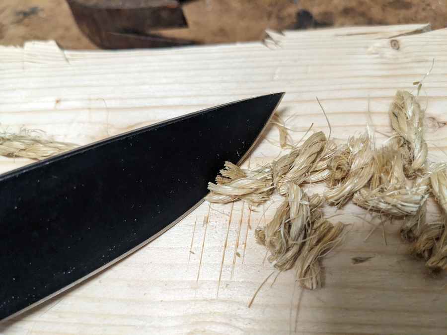 That said, it’s a very comfortable handle. The full tang of the blade is visible all around the scales, and at first I thought that might make it uncomfortable, but the tang is fully smoothed and rounded off, so it doesn’t bite into my palm at all (worth noting, the spine too is rounded, and will not spark off a ferro rod). There’s a usable lanyard hole at the exposed end of the tang.