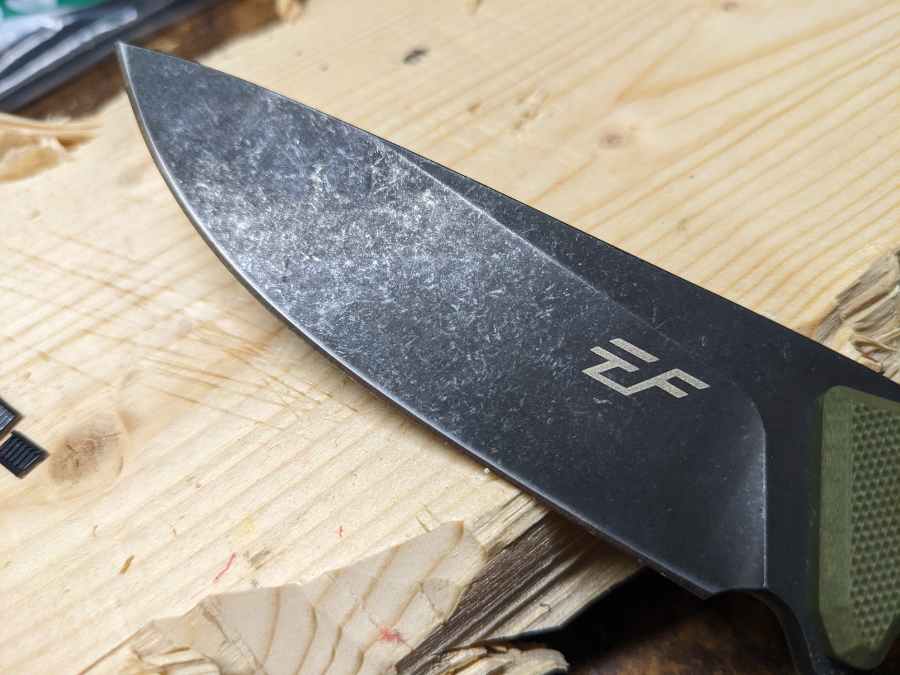 The EF107 has a drop point blade, though the drop is so subtle that the blade almost appears to have a straight back until you look at it more closely. It’s a nicely shaped blade, with plenty of belly to the cutting edge that makes it very good for slicing. The blade also has a sabre grind with a flat secondary bevel.