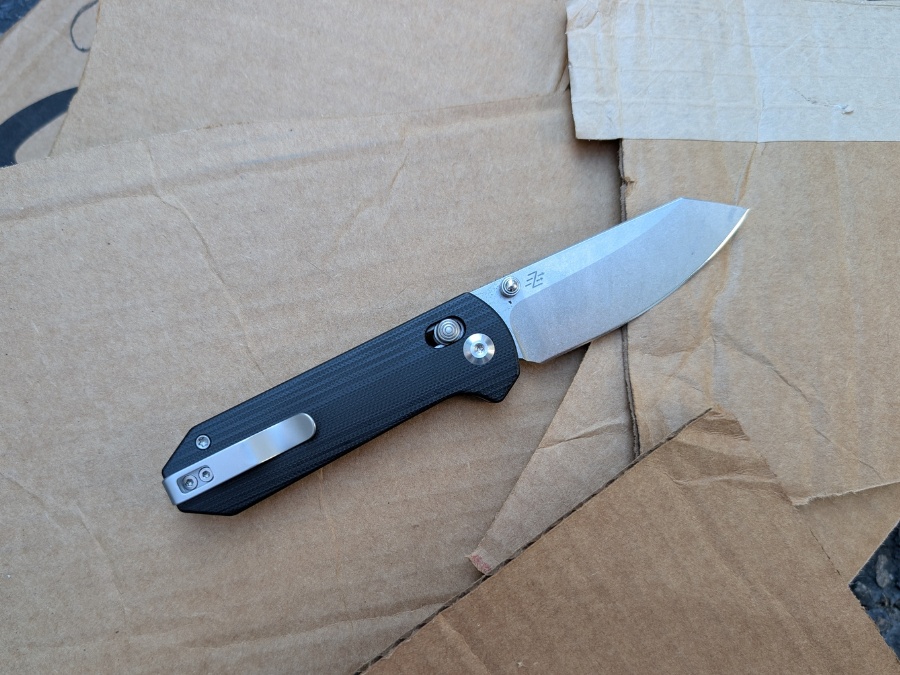 The blade might be the best part of the entire package. The reverse tanto style tip gives you control for detail work while still maintaining enough belly to slice cleanly. It bites into cardboard with ease and keeps that bite throughout the cut. You do not have to force it. You do not have to fight it. It slides through material like a knife that costs more.