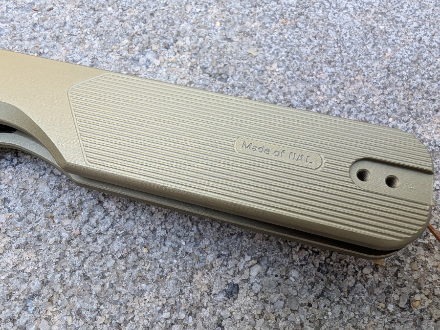 Oknife calls their alloy OAL. It is their own anodized aluminum blend that they also use in their flashlights. I have handled enough aluminum knives to know the usual problems. They mark up, they feel chalky, and they tear up your pockets.