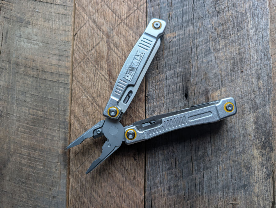 A full size multitool with a surprisingly ergonomic build, a long 440 blade, a sturdy saw, spring loaded pliers with replaceable cutters, and fully locking tools. The MT20 includes flat drivers, a Phillips driver, a cord cutter, a can opener, and a bottle opener, along with a comfortable handle design that is more refined than most budget multitools. DeWalt also includes a good sheath and a strong removable pocket clip.