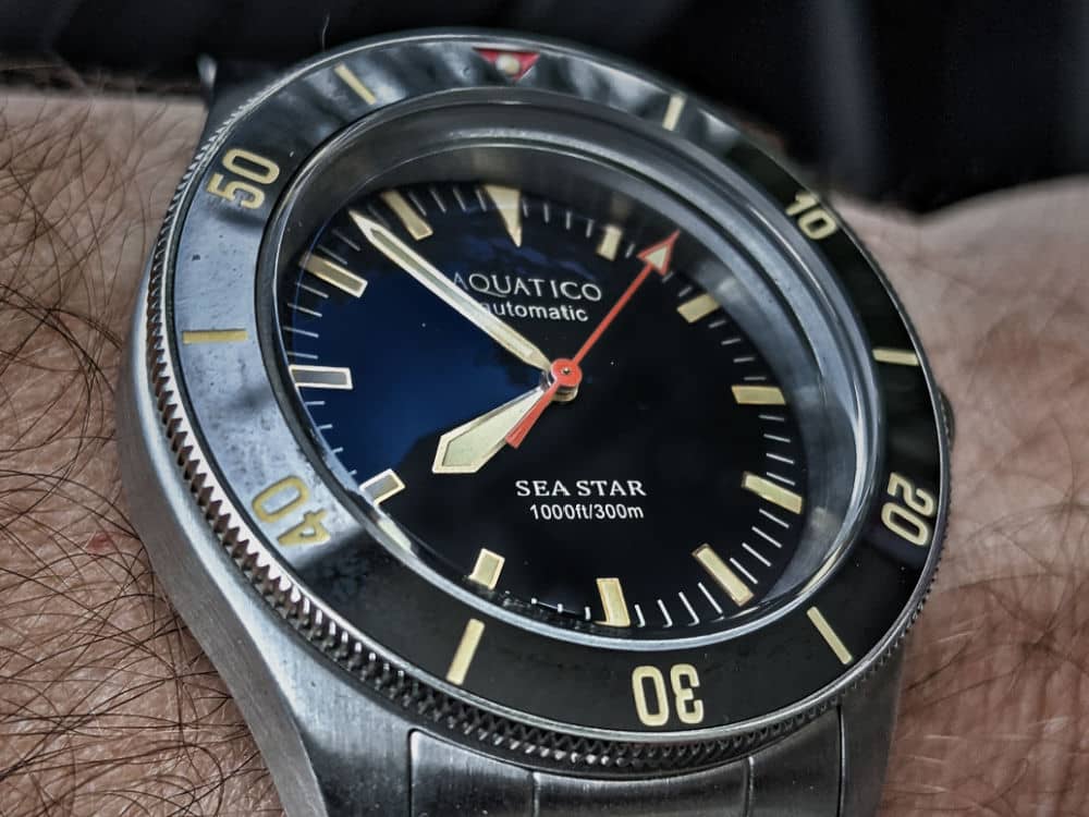 Aquatico Sea Star Automatic – This guy could also be on the $300 list if you snag it during one of Aquitico’s amazing flash sales. For $360 you get an all around great watch. The lume is awesome, it’s got a reliable Seiko automatic movement inside, double domed sapphire crystal, and a ceramic bezel. Definitely a lot of watch for the money. Just don’t count on the bracelet. Of all these micro brands I have tried, the bracelet is absolutely horrible. But don’t let that stop you, buy it and immediately throw it on a NATO or a nice quick-release from Ritchie.