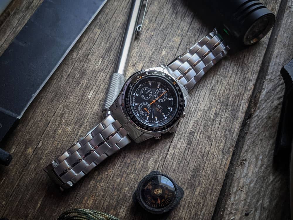 Citizen Nighthawk – I have raved about this watch before and you can read my review here. In a nutshell, you get a super cool dial that can be used for flight calculations, Citizen’s eco-drive solar technology, and a watch that can do it all from dressing up to handling a backpacking trip.
