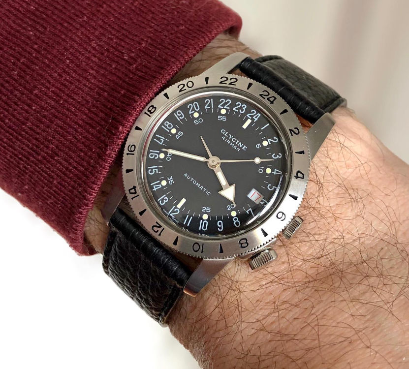 Glycine Airman 42 GL0063 – If you want something with some history behind it, good looks, and durability, then any watch from the Glycine Airman line could be for you. This 12-hour dial version has GMT functions which let you track another time zone. On top of the good looks, it’s a unique watch that you won’t run across often. I love that both of the dual crowns are screw down, that the watch has a domed sapphire crystal, AND that the watch has great lume. Prices vary by country so check around.
