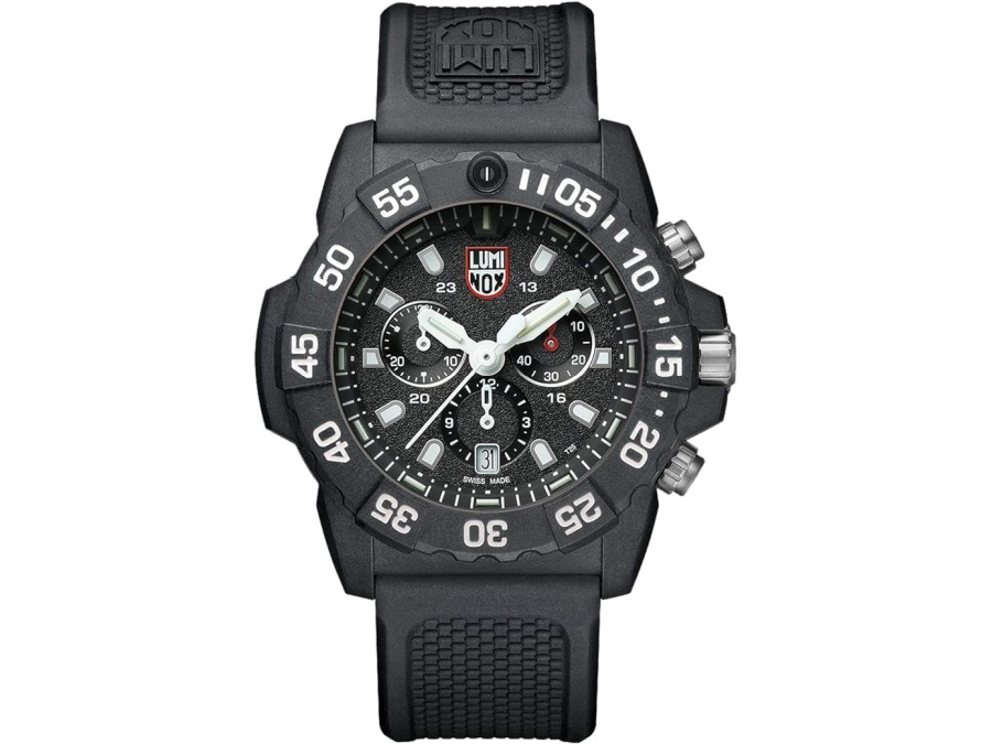 Built to meet the demands of the U.S. Navy SEALs, the Luminox XS.3581 is a purpose-built quartz tool watch with real-world toughness. It’s water-resistant to 200 meters, features a hardened mineral crystal, and uses a unidirectional bezel and protected crown for serious dive and field performance.